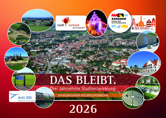 Klaus Habermann prägte Aichach wie nur wenige seiner Vorgänger. 2026 verabschiedet er sich nach 30 Jahren aus dem Bürgermeisteramt. Das Stadtarchiv Aichach widmet seinen neuen Kalender den wichtigsten (Bau-)Projekten Habermanns von seinem Dienstantritt 1996 bis heute. Gezeigt werden historische Ansichten, denen Fotografien der abgeschlossenen Projekte gegenübergestellt werden.