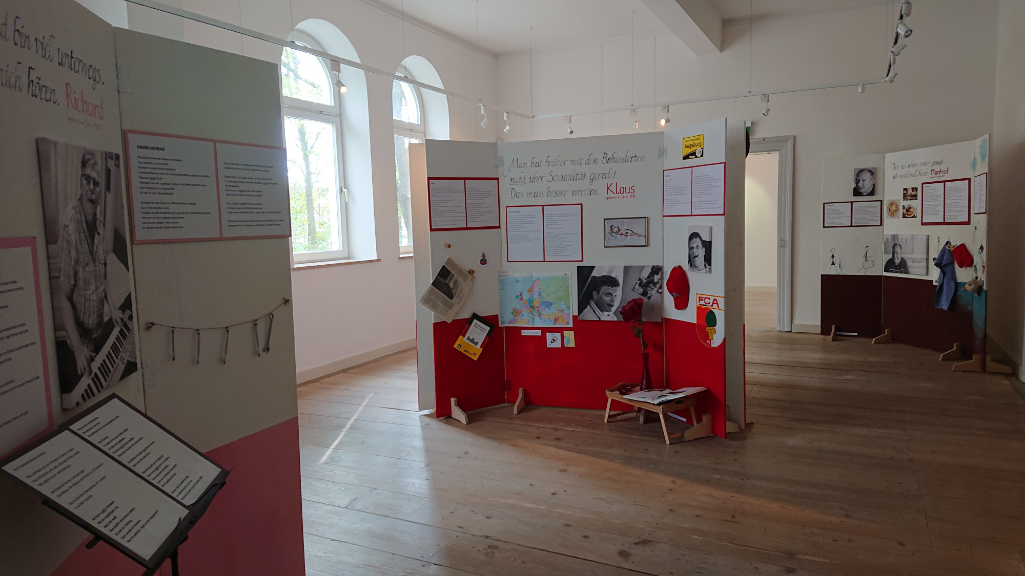 Die barrierearme Wanderausstellung, die von der Aktion Mensch gefördert wurde, entstand in Zusammenarbeit mit Studierenden des Lehrstuhls für Europäische Ethnologie/Volkskunde der Universität Augsburg. Bei der Entwicklung der Ausstellung trafen Menschen mit und ohne Behinderung aufeinander. Gemeinsam erarbeiteten sie die Ausstellungsinhalte und Gestaltungselemente, somit fördert die Ausstellung Partizipation und Inklusion auf mehreren Ebenen.